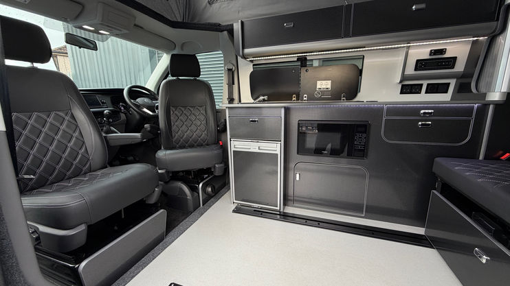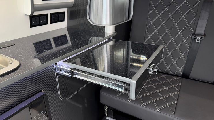 Carbon grey furniture units with silver and alloy trims
