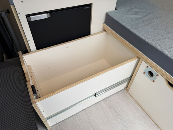 Fixed rear bed with large storage drawers